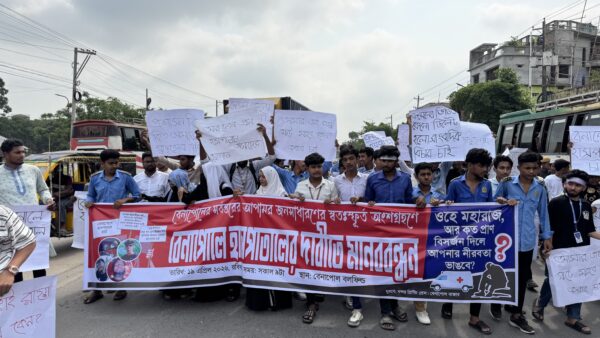 বেনাপোলে হাসপাতালের দাবিতে বিক্ষোভ সমাবেশ, মানববন্ধনের পর সড়ক অবরোধ