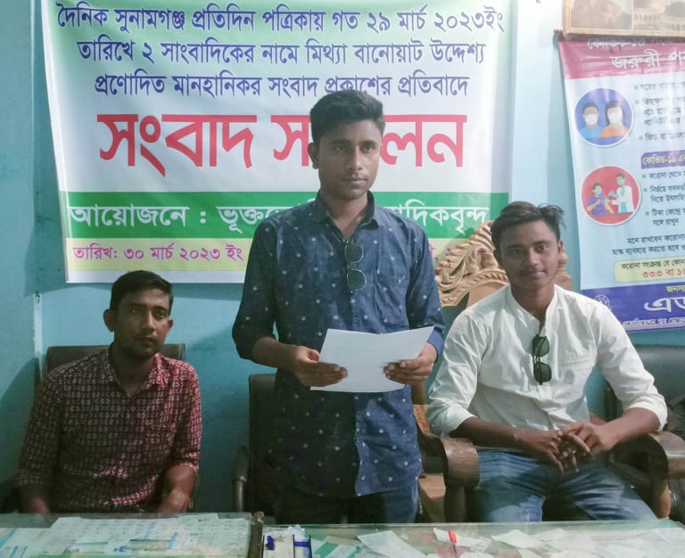 সুনামগঞ্জে দুই সাংবাদিকের নামে মিথ্যা বানোয়াট সংবাদ প্রকাশের প্রতিবাদে সংবাদ সম্মেলন