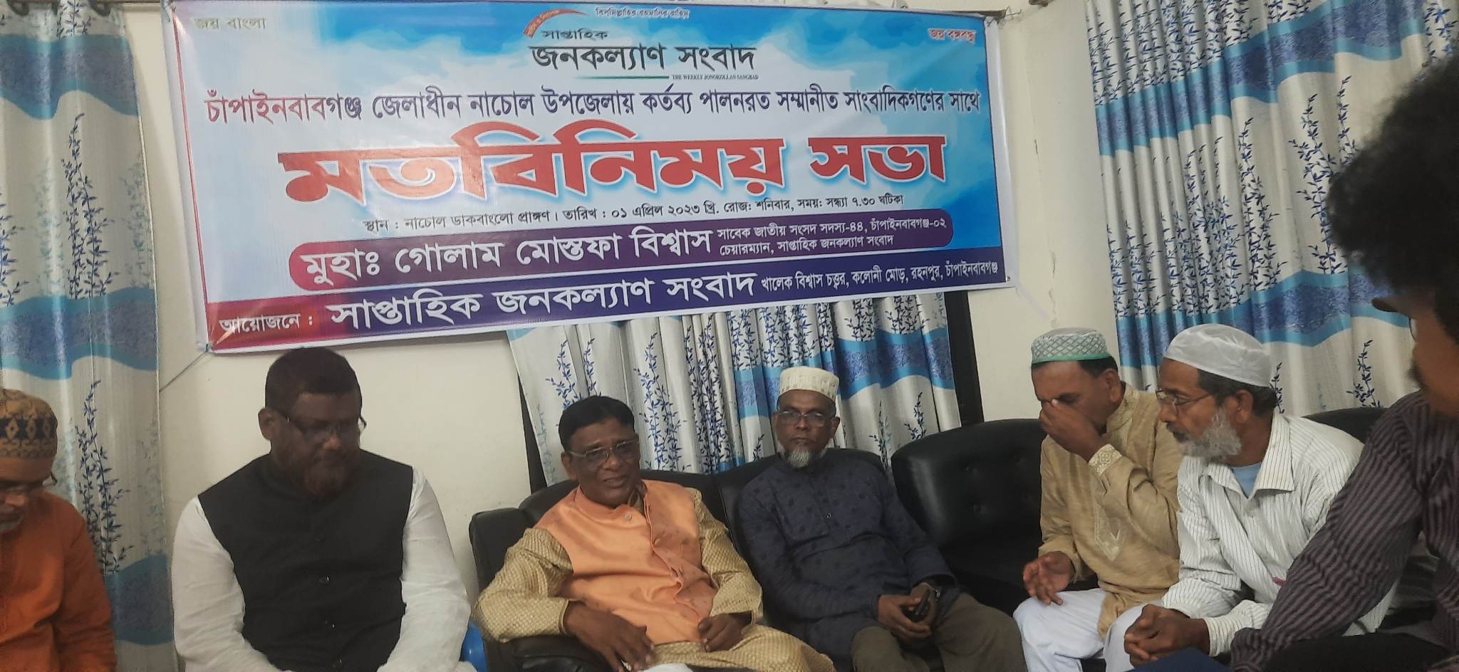 মোঃ নাসিম, স্টাফ রিপোর্টার: আজ শনিবার সন্ধ্যা ৭:৩০ মিনিটের সময় নাচোল ডাকবাংলা মিনি কনফারেন্স রুম নাচোল উপজেলার বিভিন্ন পত্রিকায় কর্মরত সাংবাদিকদের সাথে চাঁপাইনবাবগঞ্জ-২ আসনের সাবেক জাতীয় সংসদ সদস্য মুহা: গোলাম মোস্তফা বিশ্বাস বিভিন্ন বিষয় নিয়ে মতবিনিময় করেন। আসন্ন জাতীয় সংসদ নির্বাচনে তিনি দলের কাছে মনোনয়ন চাইবেন তিনি আরো বলেন, দল যাকে মনোনয়ন দিবেন তার পক্ষে তিনি কাজ করবেন।