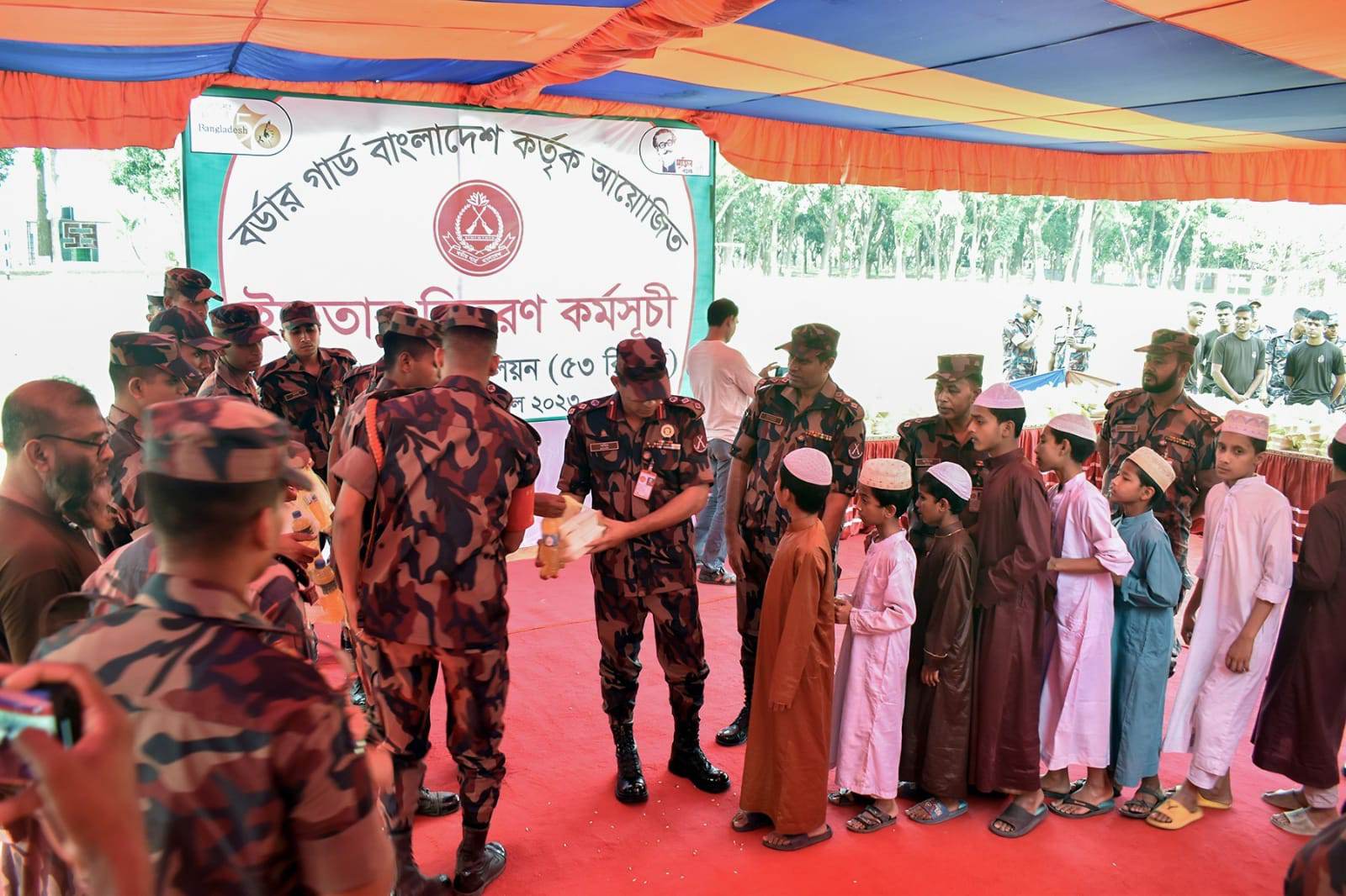 ইফতার সামগ্রী বিতরন কর্মসূচীতে উপস্থিত ছিলেন চাঁপাইনবাবগঞ্জ ব্যাটালিয়ন ৫৩বিজিবির অধিনায়ক লেঃ কর্নেল মোঃ নাহিদ হোসেন, ৫৩বিজিবির  সহকারী পরিচালক মোহাম্মদ  শাহজাহান, উপপরিচাক শ্রী অসিত কুমার নন্দি, সহ বিজিবির বিভিন্ন পর্যায়ের কর্মকর্তা ও সদস্যরা ।