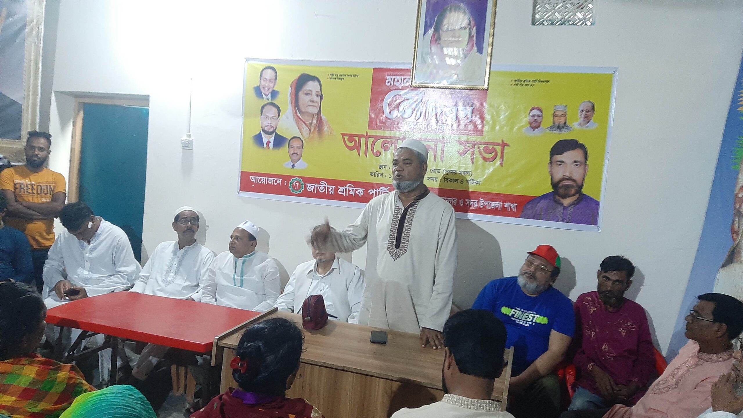 জাতীয় শ্রমিক পার্টির নেতা গৌতম কুমার ষোষের সভাপতিত্বে ও শ্রমিক নেতা আবু বকর ছিদ্দিক এর সঞ্চালনায় অনুষ্ঠিত আলোচনা সভায় অন্যান্যাদের মাঝে জাপা নেতা শরীফ খান পাঠান মিল্টন,আজিজুল হক, জাতীয় কৃষক পার্টি ময়মনসিংহ জেলার সভাপতি রুবেল আলী এসডি রুবেল, জাতীয় যুবসংহতি ময়মনসিংহ জেলার সাংগঠনিক সম্পাদক জালাল উদ্দিন, জাতীয় মহিলা পার্টির নেত্রী রেখা রাণী সাহা,ফাতেমা খাতুন,ইসমত আরা মেম্বার,আসমা মেম্বার প্রমুখ উপস্থিত ছিলেন ।