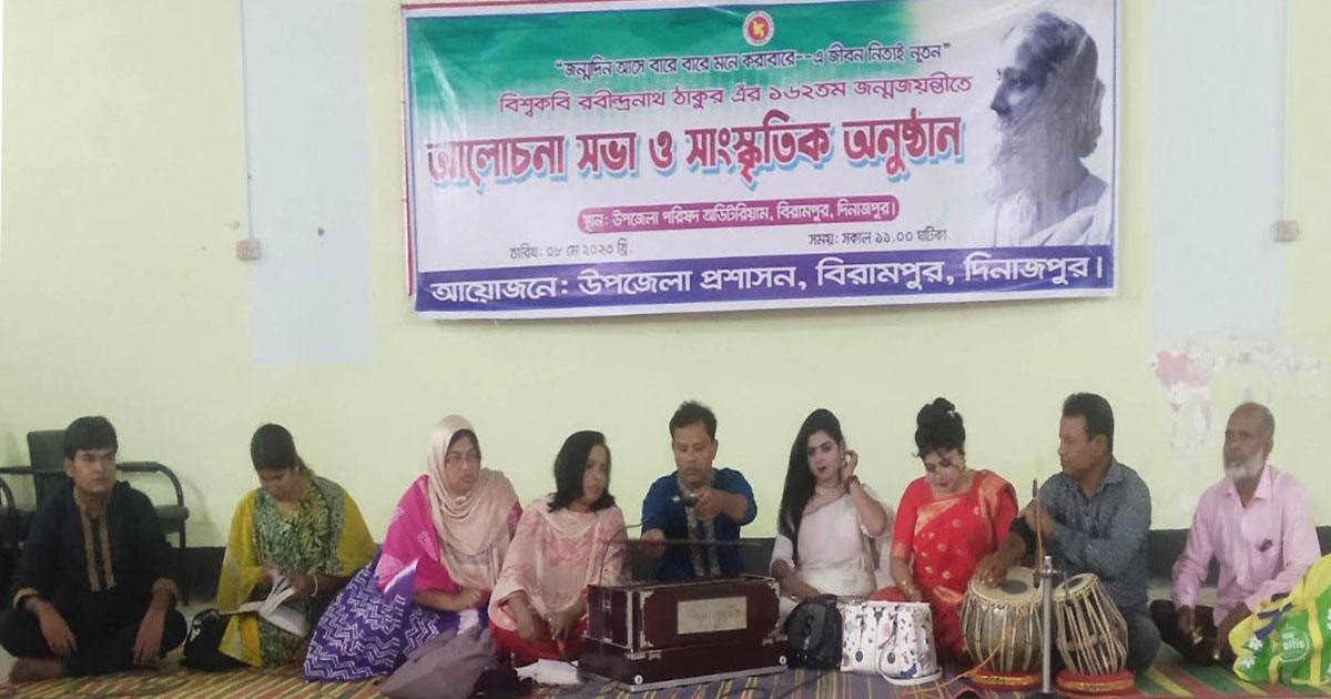 দিনাজপুর বিরামপুরে বিশ্বকবি রবীন্দ্রনাথ ঠাকুর এঁর ১৬২ তম জন্মজয়ন্তীতে আলোচনা সভা ও সাংস্কৃতিক অনুষ্ঠান অনুষ্ঠিত হয়েছে।