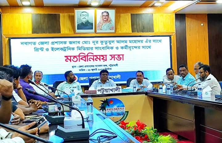 মু,হেলাল আহম্মেদ পটুয়াখালী:পটুয়াখালীতে নবাগত জেলা প্রশাসক মো,নুর কুতুবুল আলম এর সাথে জেলার প্রিন্ট ও ইলেকট্রনিক মিডিয়ায় সকল সাংবাদিকদের সাথে মতবিনিময় সভা অনুষ্ঠিত হয়।