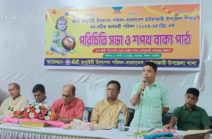 সুমন পল্লব হাটহাজারী (চট্টগ্রাম) প্রতিনিধি:শ্রীশ্রী জন্মাষ্টমী উদযাপন পরিষদ-বাংলাদেশ হাটহাজারী উপজেলার নব গঠিত কার্যকরী পরিষদের পরিচিতি সভা ও শপথ অনুষ্ঠান শুক্রবার (১১ আগস্ট) পরিষদের সভাপতি ডা. অসীম দাশ গুপ্তের সভাপতিত্বে অনুষ্ঠিত হয়।