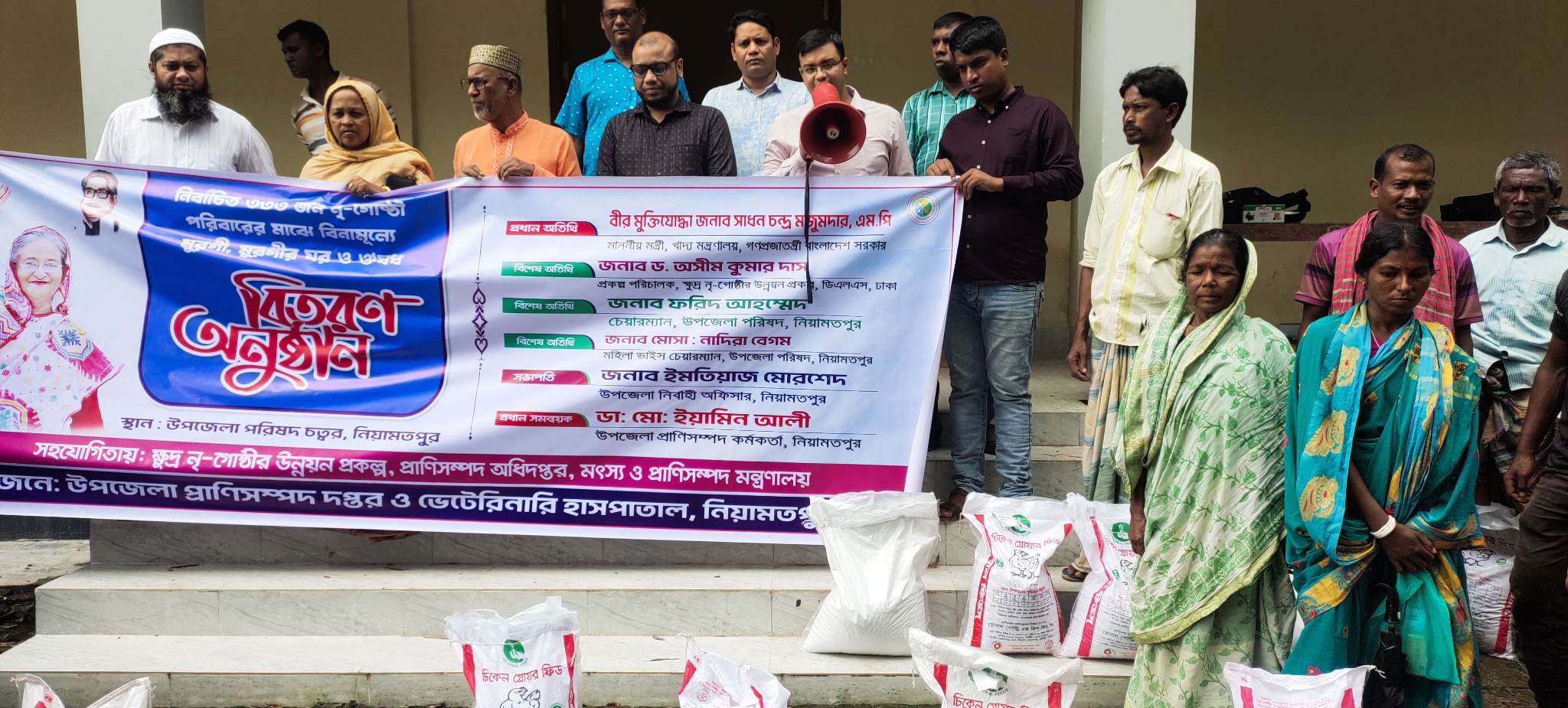 অনুষ্ঠানে সভাপতিত্ব করেন উপজেলা নির্বাহী অফিসার ইমতিয়াজ মোরশেদ। এ সময় উপস্থিত ছিলেন  উপজেলা পরিষদের মহিলা ভাইস চেয়ারম্যান নাদিরা বেগম, উপজেলা প্রাণিসম্পদ কর্মকর্তা ইয়ামিন আলী, উপজেলা কৃষি অফিসার কামরুল হাসান, উপজেলা খাদ্য নিয়ন্ত্রক আমিনুল ইসলাম, ভেটেরিনারি সার্জন আরিফুল ইসলাম প্রমুখ।