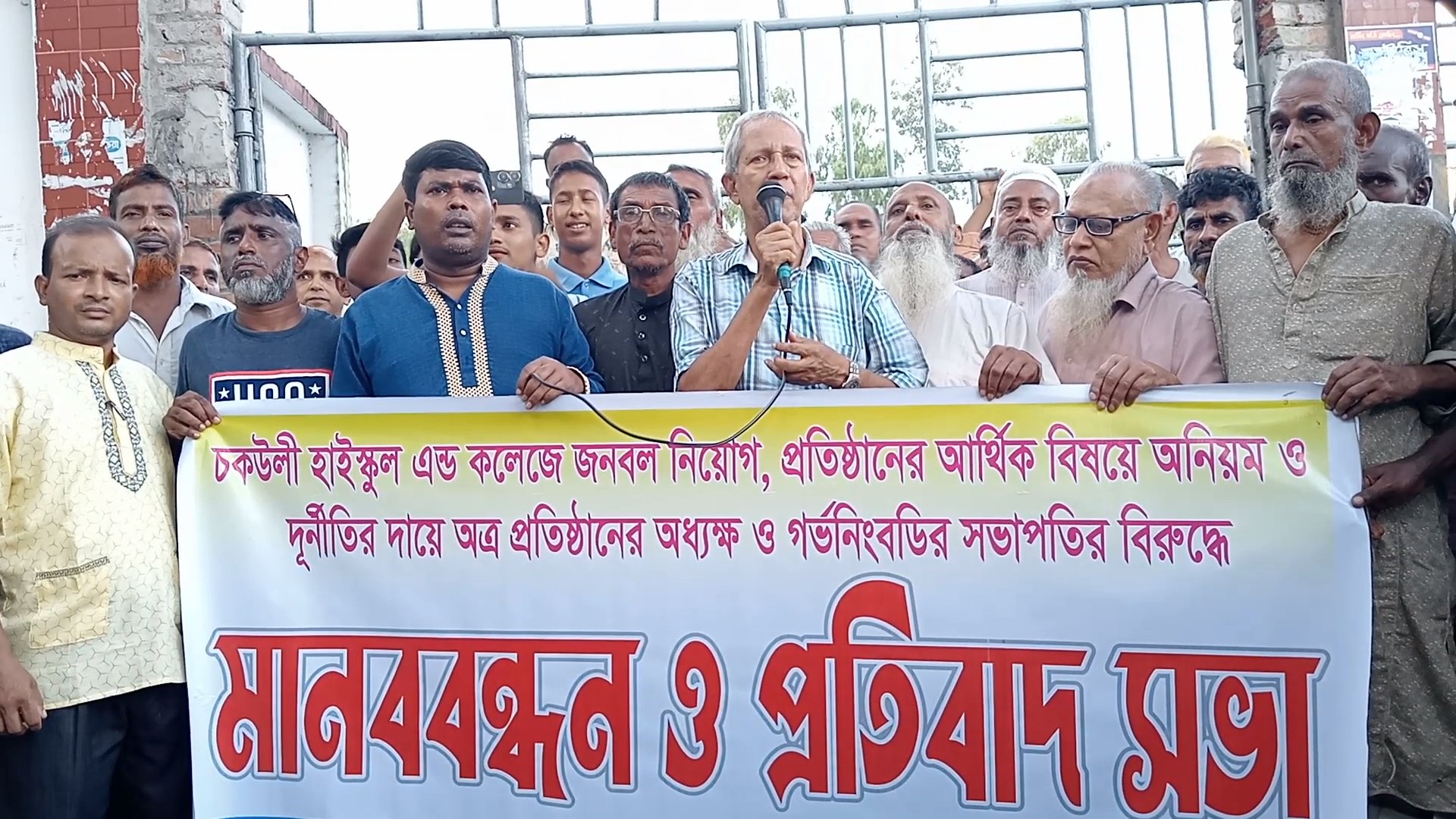 চকউলী বহুমুখী হাই স্কুল এন্ড কলেজের অধ্যক্ষ ও সভাপতির অপসারণের দাবিতে মানববন্ধন