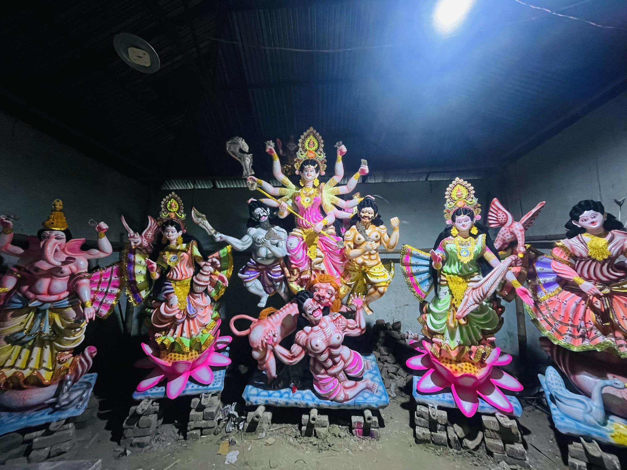 প্রতিমা তৈরীর ভাস্কর শিল্পী সাথে কথা বলে জানা গেছে ২/৩ দিনের মধ্যে প্রায় সব কয়টি পূজা মন্ডপে প্রতিমা তৈরির রং এর কাজ শেষ হবে।