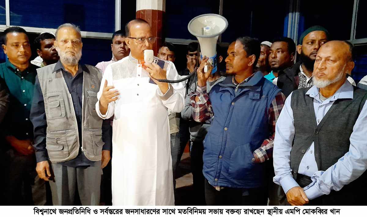 তিনি শনিবার (২৫ নভেম্বর) সন্ধ্যায় সিলেটের বিশ্বনাথে পৌর শহরের একটি কমিউনিটি সেন্টার প্রাঙ্গনে ‘উপজেলা জনপ্রতিনিধিগণ ও সর্বস্তরের জনসাধারণের সাথে মতবিনিময় সভায়’ প্রধান অতিথির বক্তব্যে একথাগুলো বলেন। আসন্ন দ্বাদশ জাতীয় সংসদ নির্বাচনে অংশগ্রহন করবেন কি না? স্থানীয় সাংবাদিকদের এমন প্রশ্নের জবাবে এমপি মোকাব্বির খান বলেন, নির্বাচনী আসনের সব শ্রেণী-পেশার মানুষের কথা শুনে, সবকিছু বিবেচনায় নিয়েই সিদ্ধান্ত নেব।