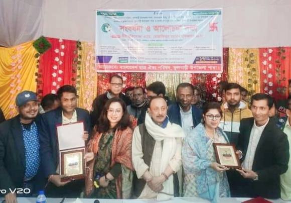 রাজু কুমার গুপ্ত ও আনন্দ কুমার গুপ্তকে সন্মাননা ক্রেস্ট দিয়ে সংবর্ধনা প্রদান করেন অনুষ্ঠানের প্রধান ও বিশেষ অতিথিদ্বয়।
