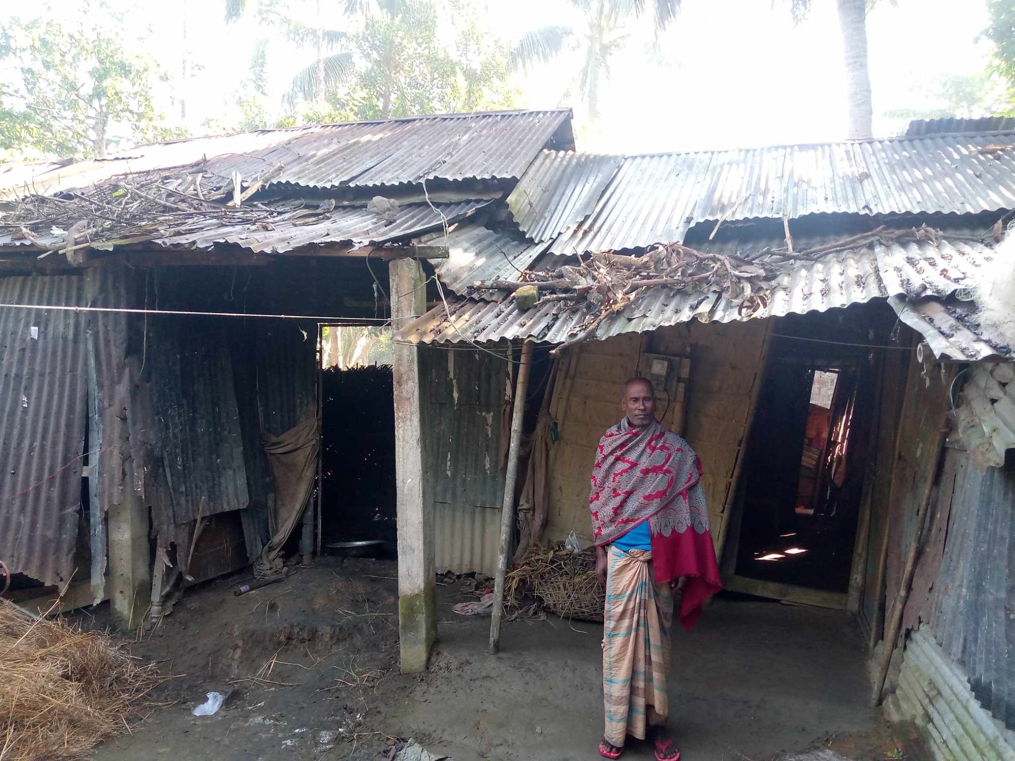 এরই মধ্যে থাকার ঘরটি বয়সের ভারে জীর্ণশীর্ণ হয়ে পড়ে। নষ্ট হয়ে যায় ঘরের বাঁশের খুঁটি, বেড়া এবং চালের টিন। চালের ফুটো দিয়ে রাতের চাঁদ তারা সবকিছুই গোনা যায়। ঘরটির জীর্ণ বেড়া ছেঁড়া কাপড় আর চট দিয়ে জোড়াতালি দেওয়া। শীতে তীব্র ঠান্ডা আর বর্ষায় বৃষ্টির পানিতে ভিজে একাকার হয়ে এই ঘরের মাটিতেই শয়ন আর এক কোণে চলে রান্নার কাজ।,