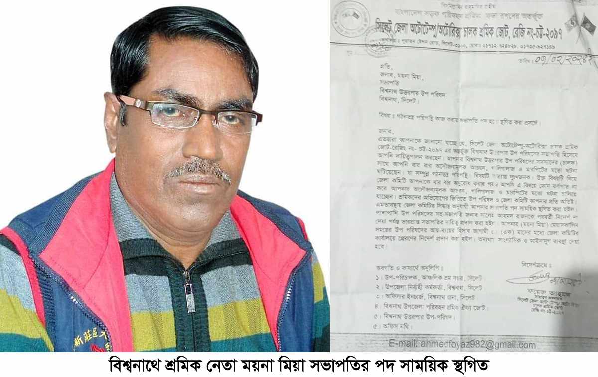 উক্ত বিষয়টি নিয়ে জেলা কমিটি ‘ময়না মিয়া’কে বার বার অনুরোধ করার পরও তিনি (ময়না) এবিষয়ে কর্ণপাত না করে নিজের (ময়না) অসৌজন্যমূলক আচরণ, গালিগালাজ ও মারপিটের মতো ঘটনা চালিয়ে যাচ্ছেন। তাই শ্রমিকদের অভিযোগের ভিত্তিতে উপ-পরিষদ ও জেলা কমিটি ‘ময়না মিয়া’র প্রতি অতিষ্ট। আর তাই এমতাবস্থায় জেলা কমিটির সিদ্ধান্ত অনুযায়ী ‘ময়না মিয়া’র সভাপতির পদ ‘সাময়িক স্থগিত’ করা হয়েছে।