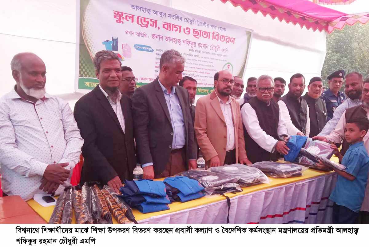 তিনি শনিবার (১৭ ফেব্রুয়ারী) বিকেলে সিলেটের বিশ্বনাথে উপজেলার দশঘর ইউনিয়নের বাইশঘর গ্রামস্থ ‘আলহাজ্ব আব্দুল মতলিব চৌধুরী ট্রাস্ট’র উদ্যোগে আলহাজ্ব আব্দুল মতলিব চৌধুরী সরকারি প্রাথমিক বিদ্যালয়ের শিক্ষার্থীদের মধ্যে ‘স্কুল ড্রেস, ব্যাগ ও ছাতা’ বিতরণকালে একথাগুলো বলেন। অনুষ্ঠানের শুরুতে কোরআন তেলাওয়াত করেন বিদ্যালয়ের শিক্ষার্থী মাহিন আনাম ও বক্তব্য রাখেন শিক্ষক আনোয়ার হোসেন।