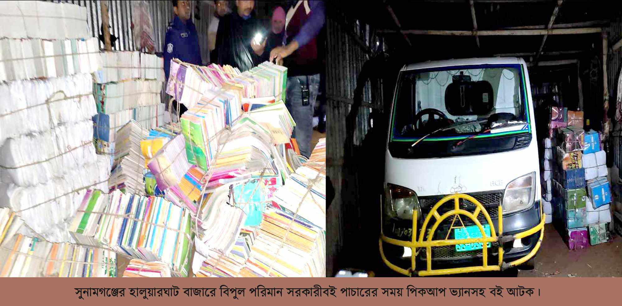 সুনামগঞ্জে পাঠ্যপুস্তক পাচারের সময় বোঝাই করা পিকঅ্যাপ আটক