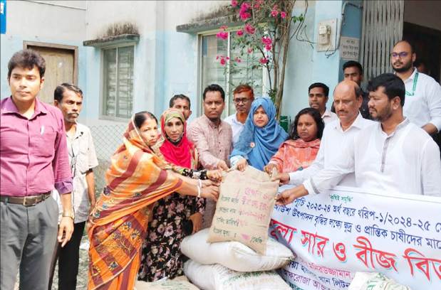 ঝালকাঠির রাজাপুরে চাষিদের মাঝে বিনামূল্যে সার-বীজ বিতরণ