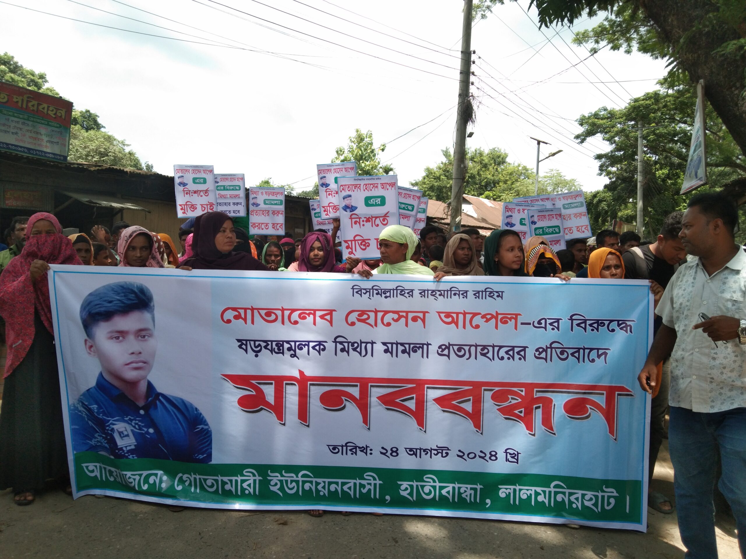 হাতীবান্ধায় পুলিশের বিরুদ্ধে মানববন্ধন