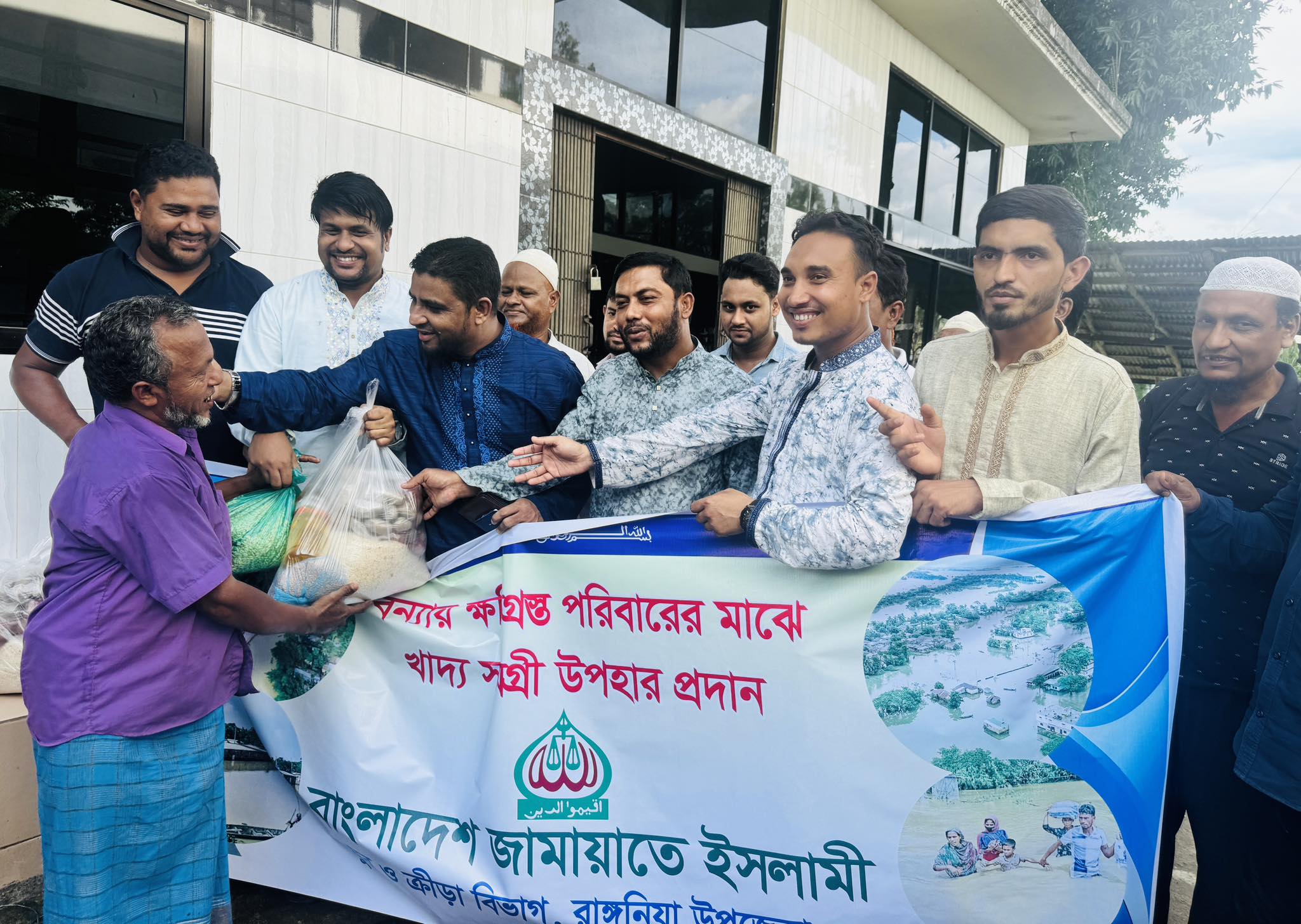 রাঙ্গুনিয়ায় বন্যার্তদের মাঝে জামায়াতে ইসলামী যুব ও ক্রীড়া বিভাগের ত্রাণ
