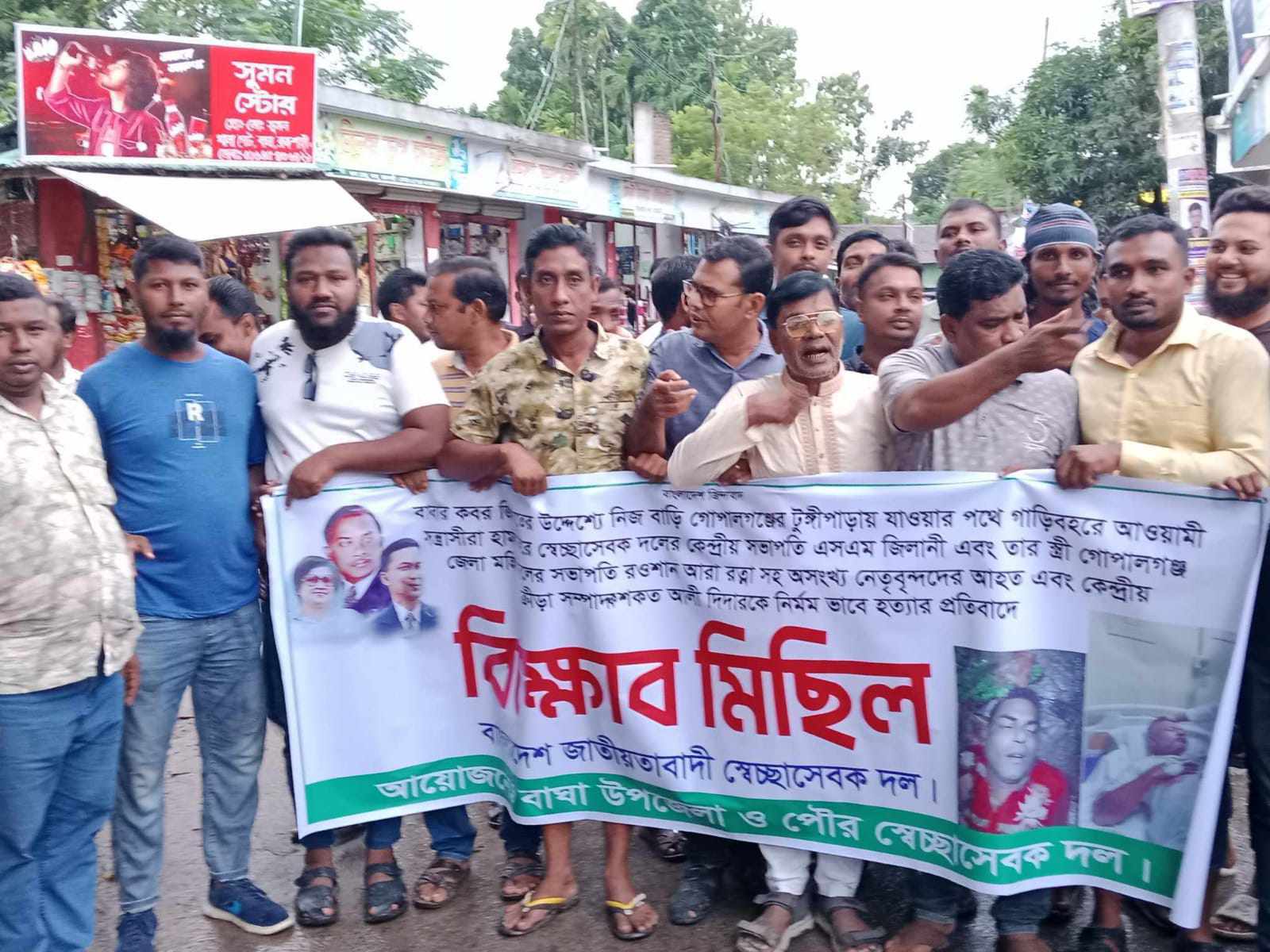 স্বেচ্ছাসেবক দল নেতাকে হত্যার প্রতিবাদে বাঘায় বিক্ষোভ মিছিল