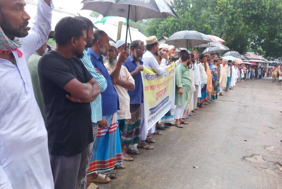 মানববন্ধনে বক্তারা মাদ্রাসা সুপার আব্দুল লতিফ এবং তৎকালীন সভাপতি ফরিদকে আইনের আওতায় আনার দাবি জানান।