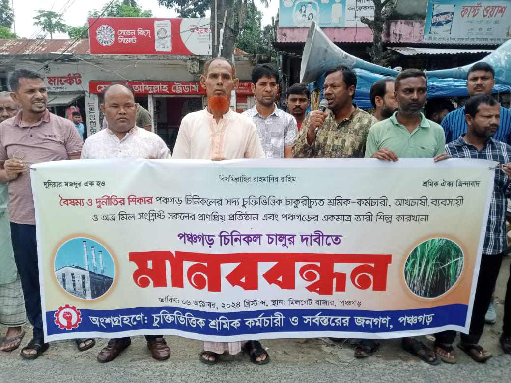 পঞ্চগড়ে বন্ধ সুগার মিল চালুর দাবিতে মানববন্ধন