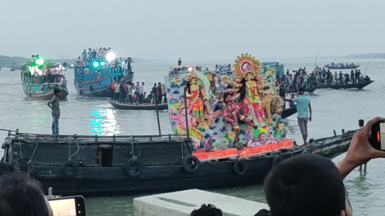 খোলপেটুয়া নদীতে প্রতিমা বিসর্জনের মধ্য দিয়ে শারদ উৎসবের সমাপ্তি
