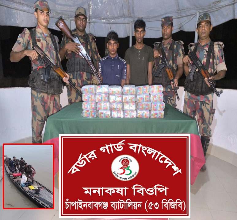 সোমবার (১৪ অক্টোবর) রাতে গণমাধ্যমে পাঠানো প্রেস বিজ্ঞপ্তিতে এসব তথ্য জানান, চাঁপাইনবাবগঞ্জ ব্যাটালিয়ন ৫৩বিজিবির অধিনায়ক লেঃ কর্নেল মোঃ মনির-উজ-জামান।