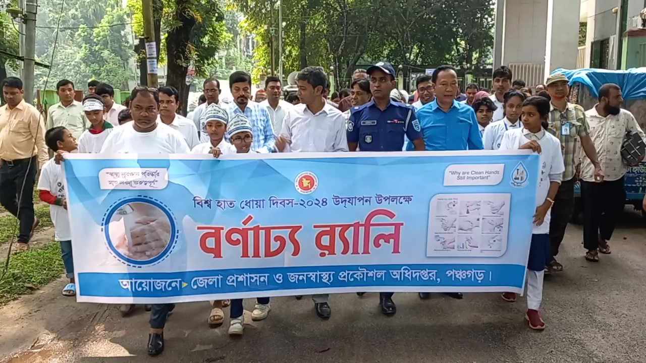 স্নিগ্ধা খন্দকার পঞ্চগড় প্রতিনিধিঃ“স্বাস্থ্য সুরক্ষায় পরিস্কার হাত সর্বদা গুরুত্বপূর্ণ”—এই প্রতিপাদ্যে পঞ্চগড়ে নানা আয়োজনে বিশ্ব হাত ধোয়া দিবস পালিত হয়েছে। মঙ্গলবার সকাল ১১টায় জেলা প্রশাসন ও জনস্বাস্থ্য প্রকৌশল অধিদপ্তরের যৌথ উদ্যোগে জেলা প্রশাসকের কার্যালয় প্রাঙ্গণ থেকে একটি বর্ণাঢ্য র‌্যালি বের করা হয়। র‌্যালিটি শহরের প্রধান সড়কগুলো প্রদক্ষিণ করে একই স্থানে ফিরে আসে।