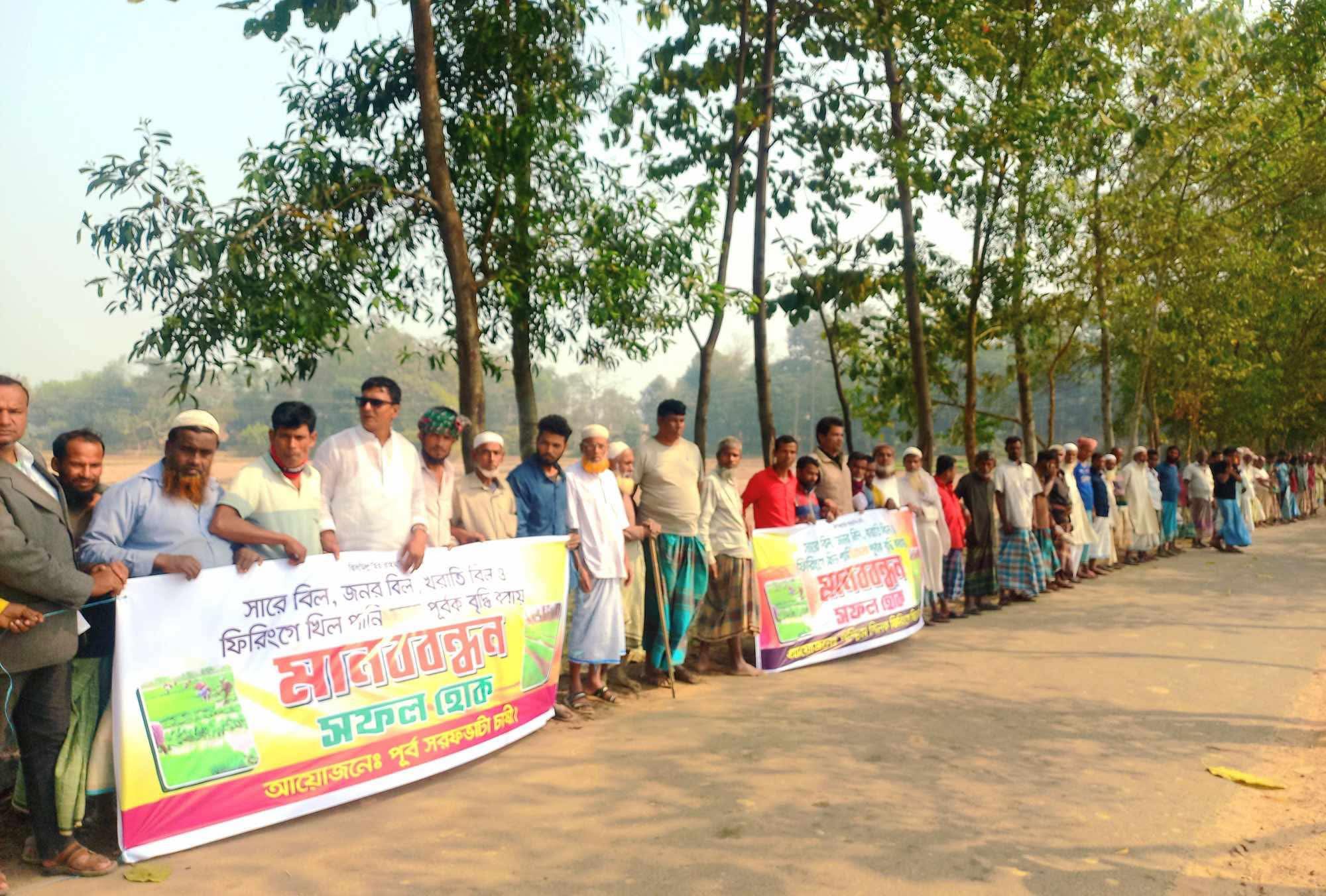 রাঙ্গুনিয়ায় সেচের বাড়তি দামের প্রতিবাদে কৃষকদের মানববন্ধন