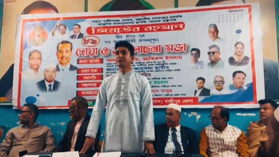 উক্ত অনুষ্ঠানে আরও উপস্থিত ছিলেন জিয়া সাংস্কৃতিক সংগঠন গাজীপুর জেলা শাখার সাংগঠনিক সম্পাদক মোঃ জাহিদ হাসান তন্ময় সিনিয়র সহ সভাপতি এডভোকেট সাখাওয়াত হোসেন ;বিশিষ্ট আইনজীবী অ্যাডভোকেট লেহাজ উদ্দিনসহ অন্যান্য নেতৃবৃন্দ । অনুষ্ঠানে প্রধান অতিথি অ্যাডভোকেট জাকিরুল ইসলাম বলেন ফ্যাসিস্ট হাসিনার পতনের মধ্য দিয়ে বাংলাদেশে নতুন করে গণতান্ত্রিক পরিবেশ ফিরিয়ে এনে মানুষের ভোটের অধিকার পূর্ণ প্রতিষ্ঠা করতে হবে ।