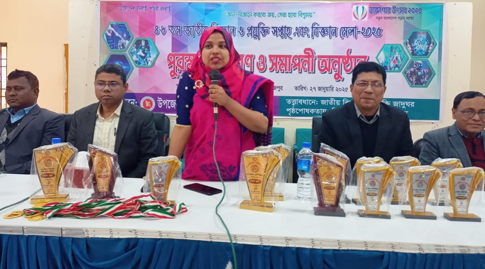 পুরস্কার বিতরণকালে উপজেলা নির্বাহী কর্মকর্তা (ইউএনও) ফাতেহা তুজ জোহরা বলেন, “বর্তমান বিশ্বের সাথে তাল মিলিয়ে চলার জন্য বিজ্ঞানমনষ্ক হয়ে উঠতে হবে।