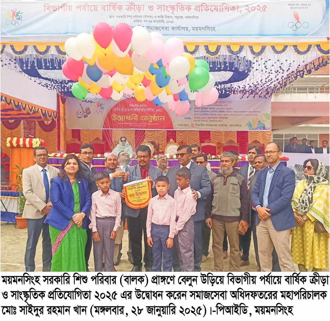 মঙ্গলবার (২৮ জানুয়ারি) ময়মনসিংহ বিভাগীয় সমাজসেবা কার্যালয়ের আয়োজনে ময়মনসিংহ, শম্ভুগঞ্জে অবস্থিত সরকারি শিশু পরিবার (বালক) মাঠে অনুষ্ঠিত সমাজসেবা অধিদফতরাধীন ময়মনসিংহ বিভাগের বিভিন্ন প্রতিষ্ঠানের শিশুদের অংশগ্রহণে বিভাগীয় পর্যায়ে বার্ষিক ক্রীড়া ও সাংস্কৃতিক প্রতিযোগিতার উদ্বোধনী অনুষ্ঠানে প্রধান অতিথির বক্তব্যে তিনি এসব কথা বলেন।