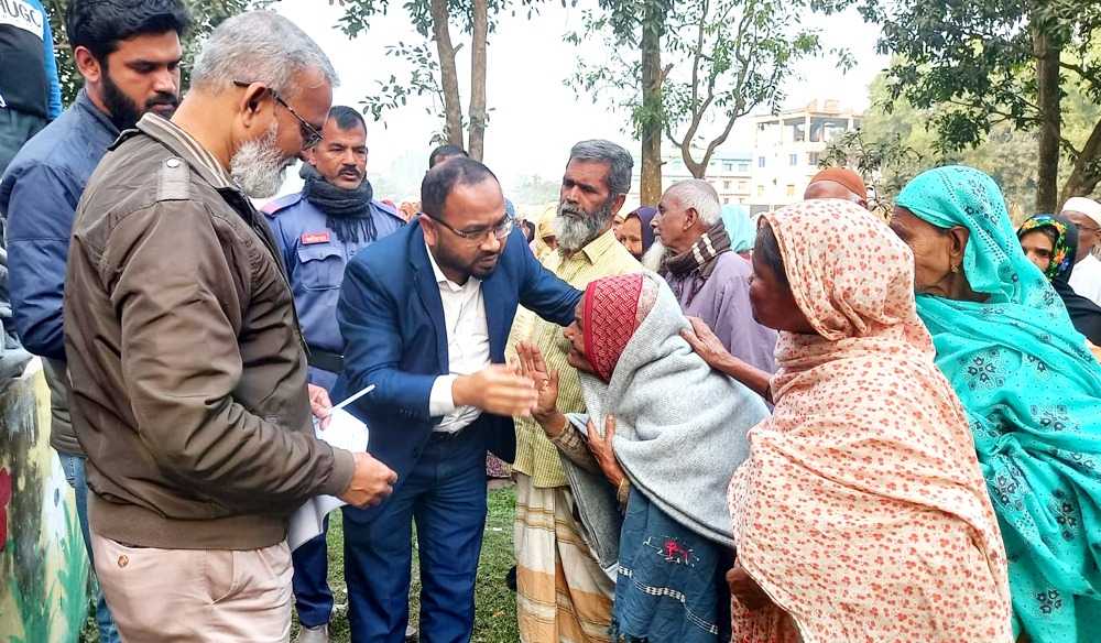 শীতার্তদের গায়ে কম্বল জড়িয়ে দিলেন ফুলবাড়ী পৌর প্রশাসক