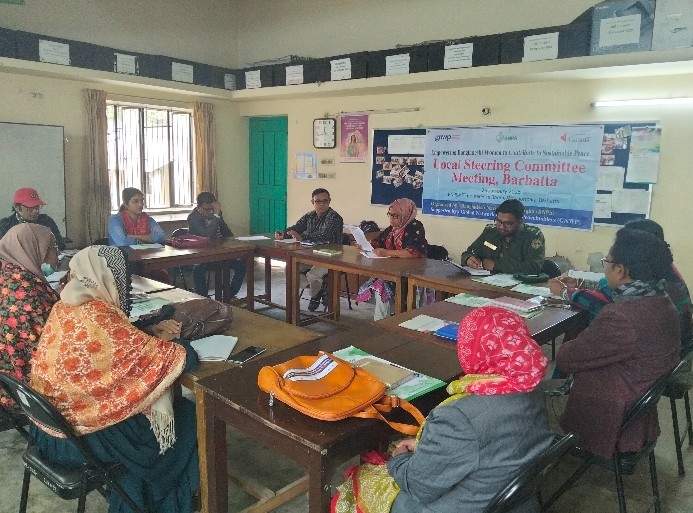শীর্ষক প্রকল্পের আওতায় নেত্রকোনা জেলার বারহাট্টা উপজেলার বিভিন্ন সরকারী দপ্ততের কর্মকর্তা, নারী নেত্রী, শিক্ষক, সংস্কৃতিকর্মী, স্থানীয় সরকার ও যুব প্রতিনিধিদের নিয়ে গঠিত উপেজলা ষ্টিয়ারিং কমিটি।এটি বারহাট্টায় নারীর শান্তি ও নিরাপত্তায় কার্যক্রম অব্যাহত রেখেছে। আজকের সভায় বিগত সভার সিদ্বান্ত অনুযায়ী বাস্তবায়িত কার্যক্রম, ফলাফল, নারীর প্রতি সহিংসতা মোকাবেলায় চ্যালেঞ্জ ও উত্তোরনের কৌশল এবং জাতীয় কর্মপরিকল্পনাটি কে লোকালাইজড করার উপায় নিয়ে আলোচনা অনুষ্ঠিত হয়।আলোচনা সভায় কমিটির সদস্যগন ইউনিয়ন ও উপজেলা পর্যায়ে নারীর প্রতি সহিংসতা প্রতিরোধে বিভিন্ন কমিটিতে নারীর কার্যকর অংশগ্রহন ও সরকারী বেসরকারী প্রতিষ্ঠানে কর্মক্ষেত্রে নারী সহায়ক পরিবেশ তৈরীর উপর গুরুত্বারুপ করেন।