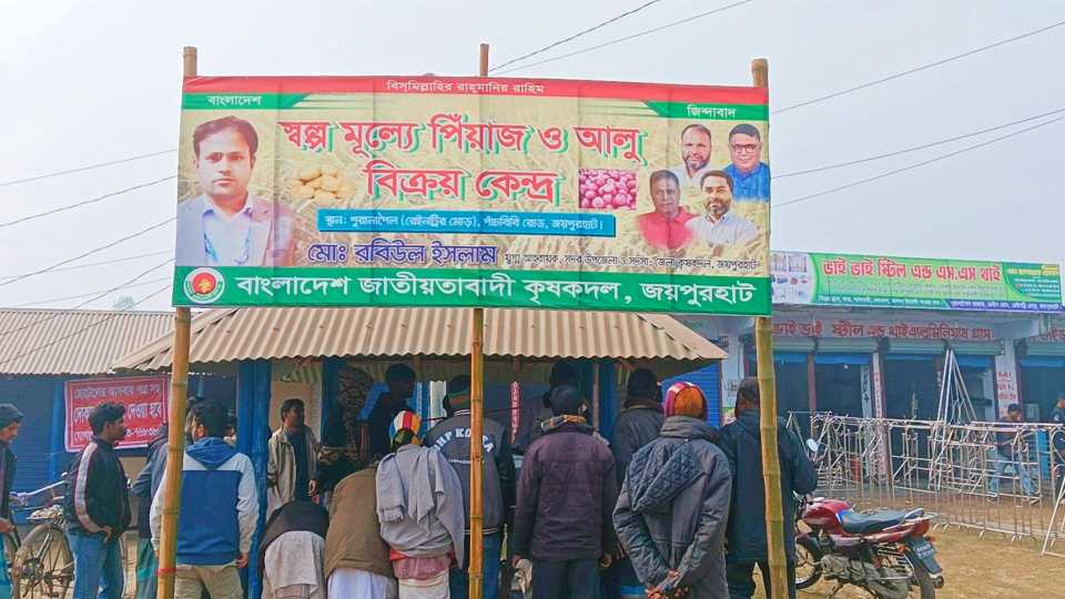 জয়পুরহাটে অর্ধেক দামে পিয়াজ আলু বিক্রি, উপকৃত সাধারণ মানুষ