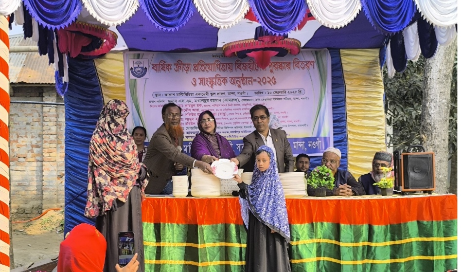 নওগাঁ প্রতিনিধিঃ নওগাঁর মান্দায় আকাশ মাল্টিমিডিয়া একাডেমি ও কেজি স্কুলে বার্ষিক ক্রীড়া প্রতিযোগিতায় বিজয়ীদের মাঝে পুরস্কার বিতরণ ও সাংস্কৃতিক অনুষ্ঠান অনুষ্ঠিত হয়েছে।