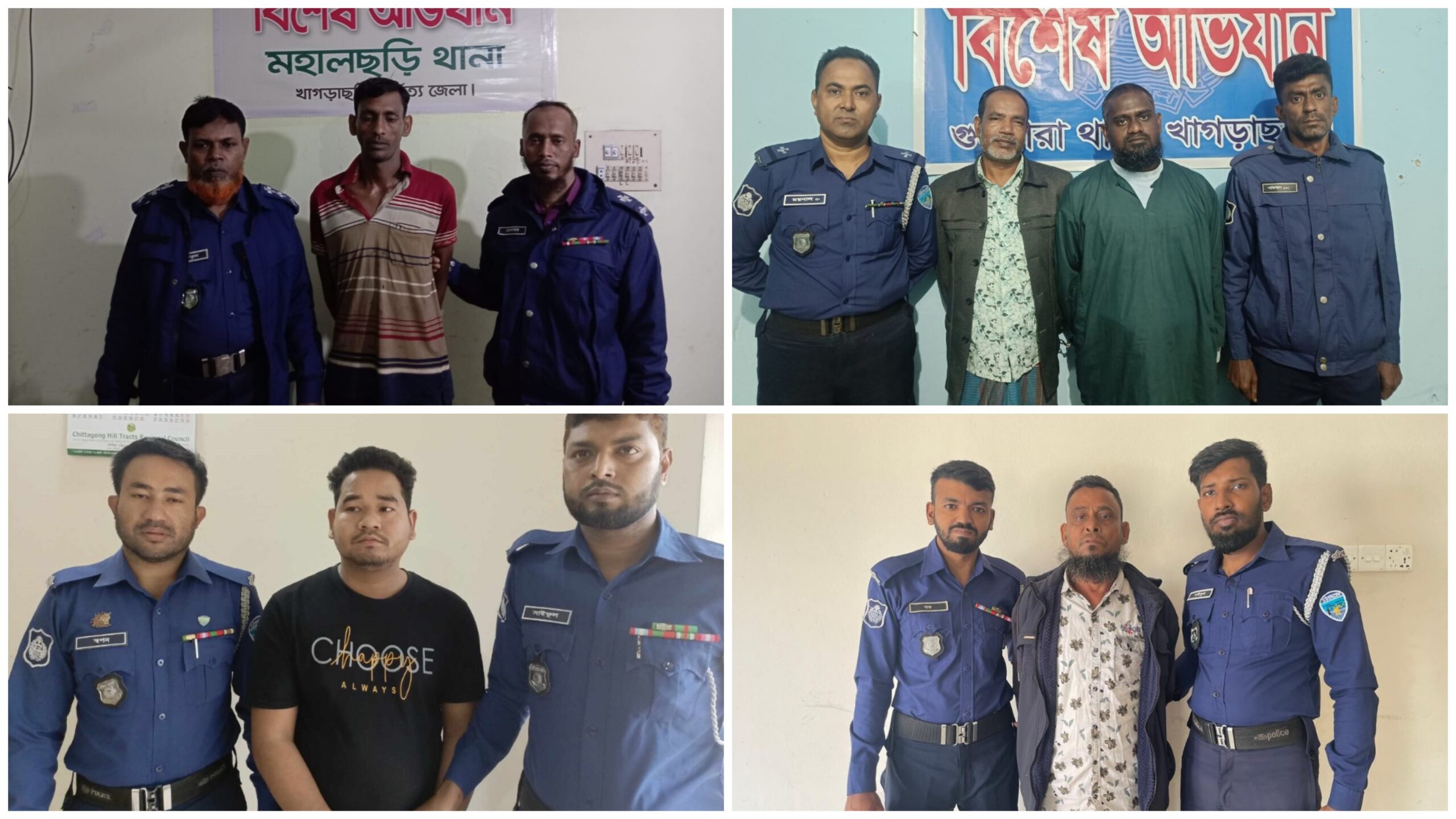 পুলিশ জানিয়েছে, গ্রেফতারকৃতদের বিরুদ্ধে ৫ আগস্টের পর সংঘটিত বিভিন্ন সহিংস ঘটনার অভিযোগ রয়েছে এবং তাদের বিরুদ্ধে পূর্বে দায়ের করা মামলায় গ্রেফতার দেখানো হয়েছে। সাম্প্রতিক সময়ে খাগড়াছড়ির বিভিন্ন এলাকায় সহিংসতা বৃদ্ধির পর পুলিশ অভিযান জোরদার করে এবং একাধিক মামলার তদন্তের অংশ হিসেবে এসব গ্রেফতার সম্পন্ন হয়।
