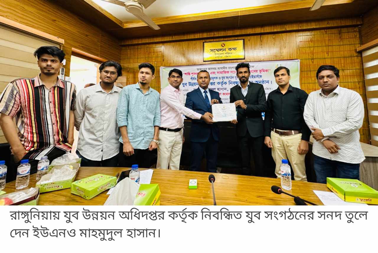 রাঙ্গুনিয়ায় সামাজিক সচেতনতায় যুবদের ভূমিকা ও সনদ বিতরণ