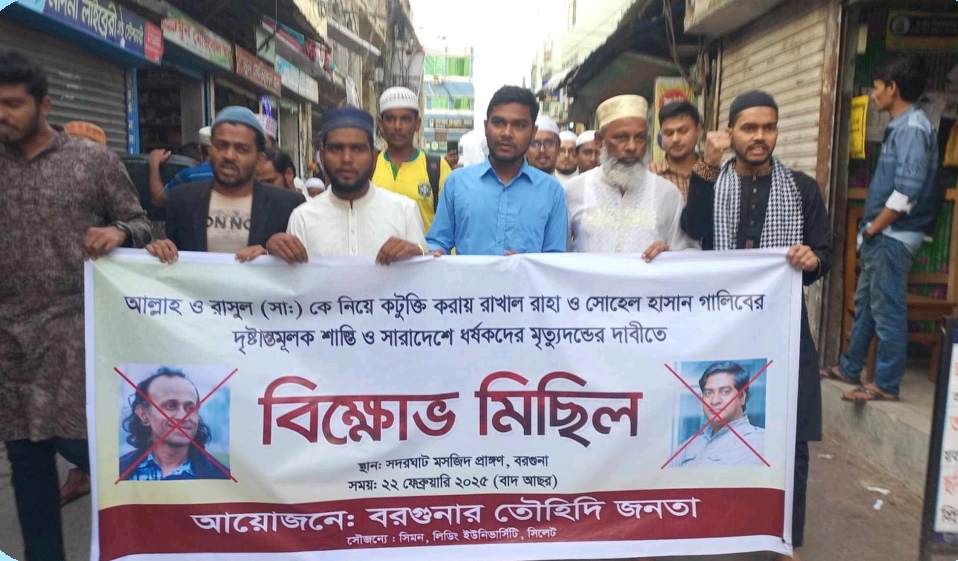 আল্লাহ ও রাসুল (সাঃ) কে নিয়ে কটুক্তি করার প্রতিবাদে বরগুনায় তাওহীদি জনতার বিক্ষোভ