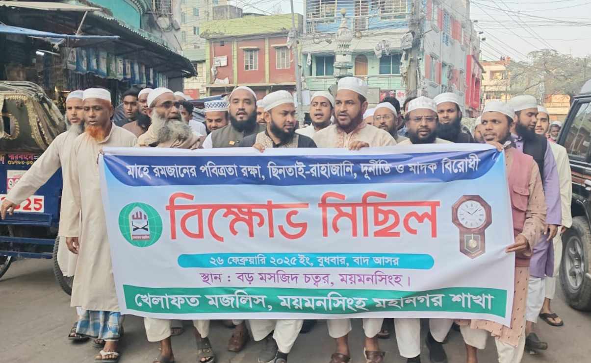 ময়মনসিংহ রমজানের পবিত্রতা রক্ষায় খেলাফত মজলিস এর বিক্ষোভ মিছিল