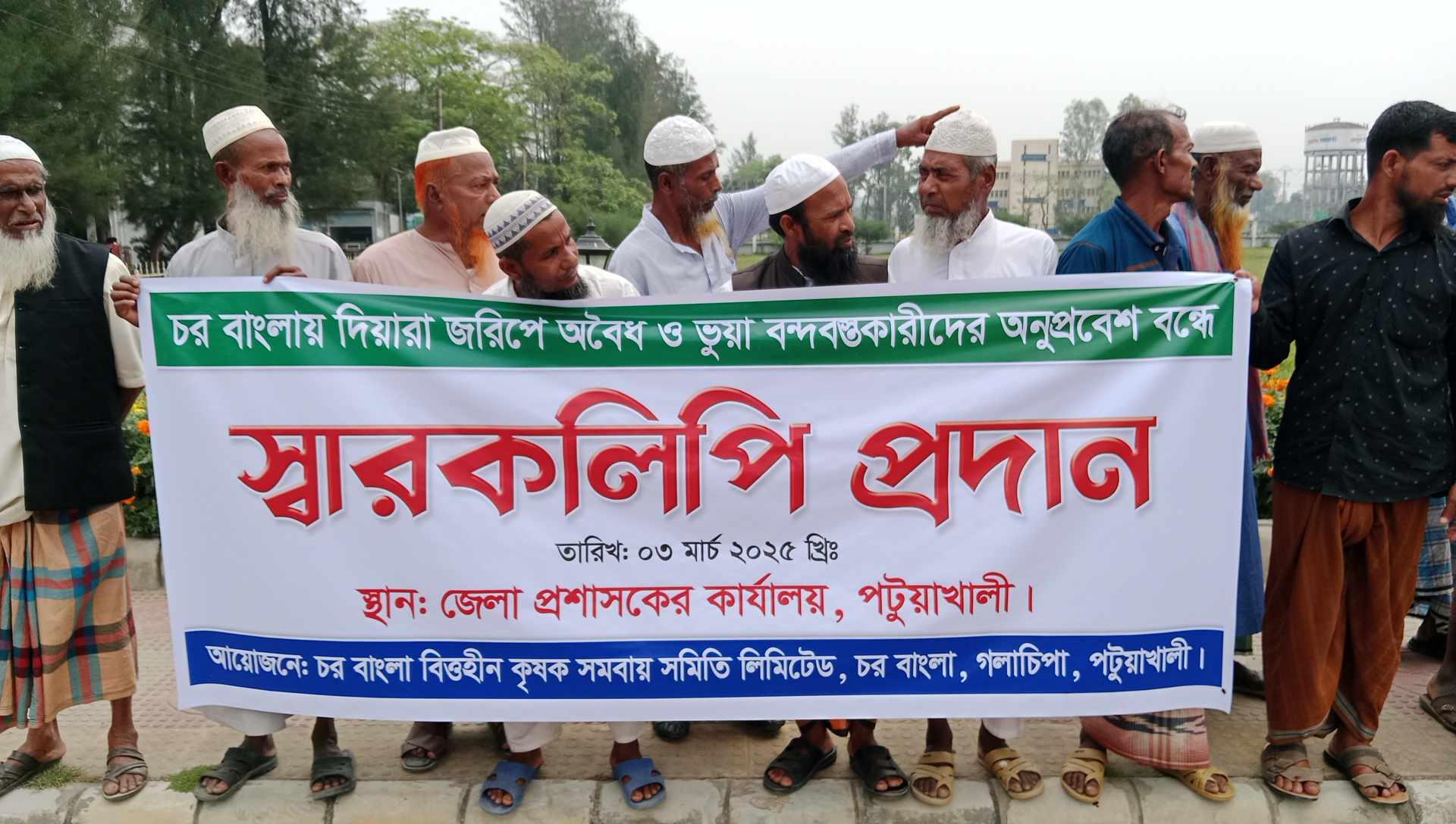 পরিশেষে মানববন্ধন কর্মসূচি শেষে জেলা প্রশাসক বরাবর স্বারকলিপি প্রদান প্রদান করেন চর বাংলা বিত্তহীন কৃষক সমবায় সমিতি লিমিটেড, চর বাংলা, গলাচিপা, পটুয়াখালী।