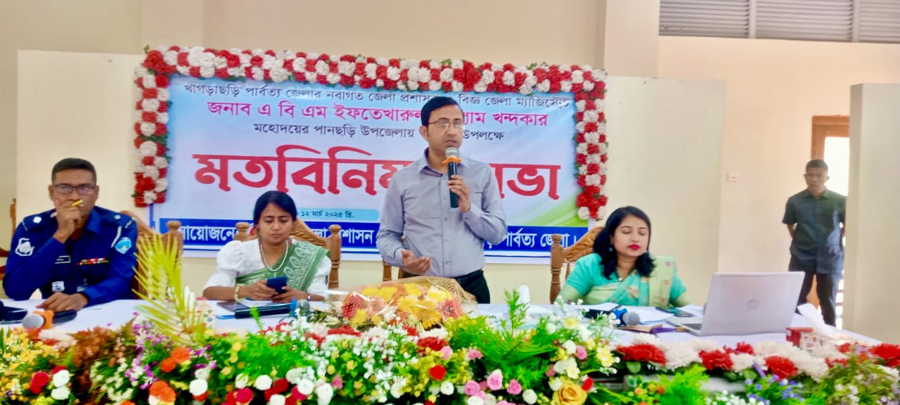 খাগড়াছড়ির পানছড়িতে নবাগত জেলা প্রশাসক ও বিজ্ঞ জেলা ম্যাজিস্ট্রেট এ বি এম ইফতেখারুল ইসলাম খন্দকার এর আগমন উপলক্ষে মতবিনিময় সভার আয়োজন করা হয়েছে।