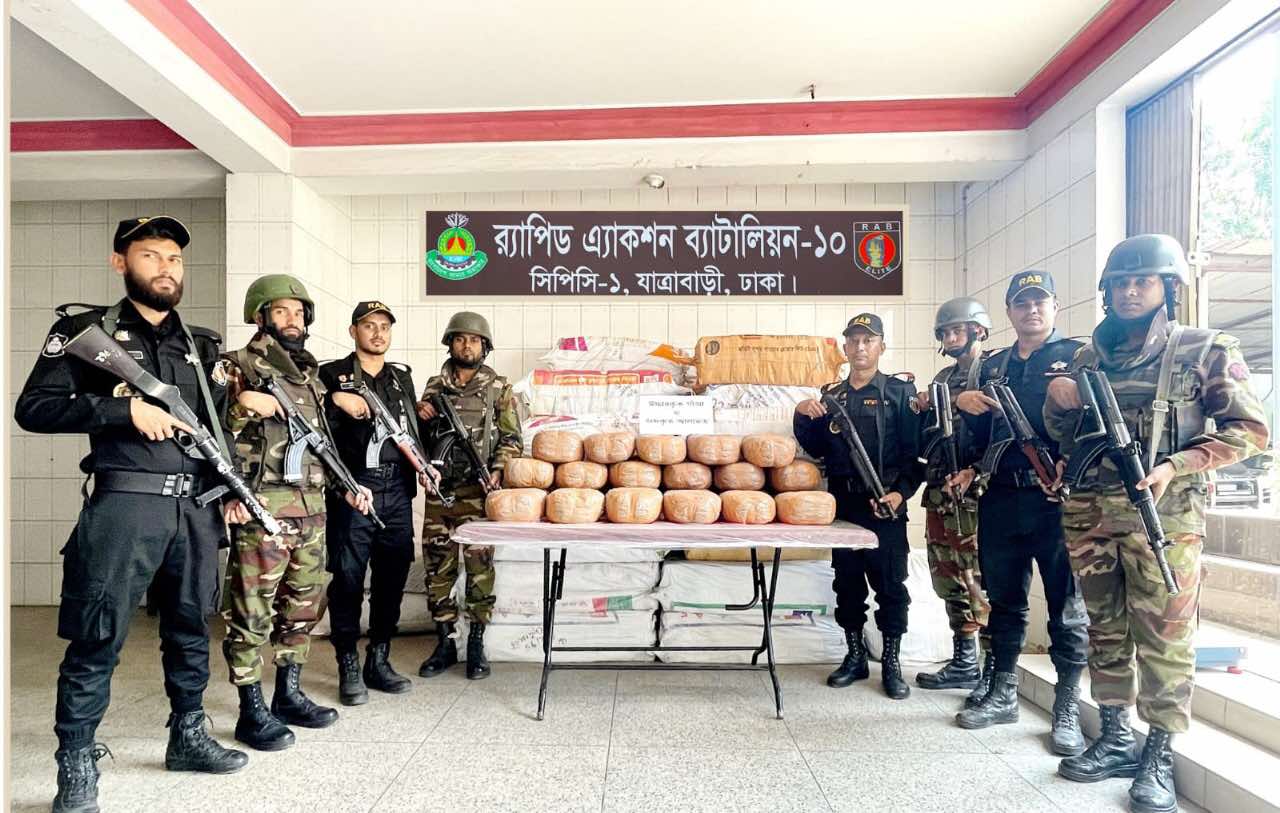কেরানীগঞ্জ ঢাকা প্রতিনিধিঃ ১২ মার্চ, ২০২৫ তারিখ দিবাগত রাতে সেনাবাহিনী ও র্যাব-১০ এর যৌথ আভিযানিক দল রাজধানীর যাত্রাবাড়ী থানাধীন চট্রগ্রাম টু ঢাকাগামী মাতুয়াইল ইউ-টার্ন রাস্তায়* চেকপোস্ট পরিচালনা করে। উক্ত চেকপোস্টে *এসএ পরিবহন এর তিনটি কার্গোগাড়ী তল্লাশি করে আনুমানিক কোটি টাকা মূল্যের ৩৮ বস্তা আতশবাজি ও ৪৮ কেজি গাঁজা* উদ্ধার করে। উক্ত ঘটনায় জড়িত পলাতক আসামীদের গ্রেফতারে র্যাব-১০ সচেষ্ট রয়েছে। আইনগত ব্যবস্থা প্রক্রিয়াধীন।