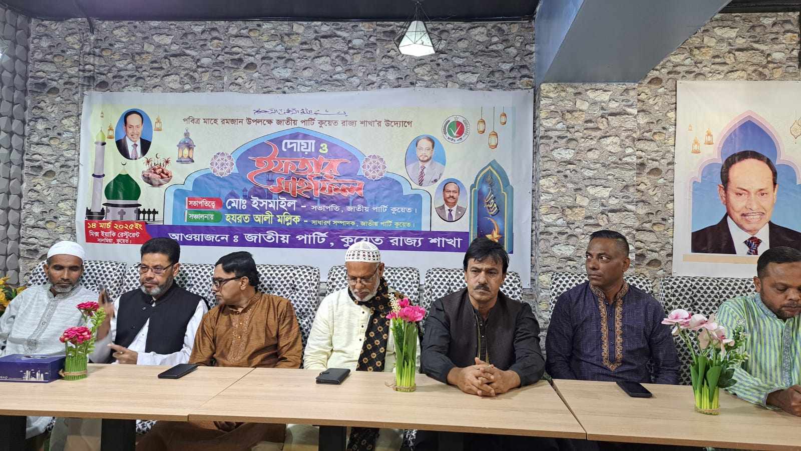বেলাল উদ্দিন।আয়োজিত ইফতার মাহফিলে আরো উপস্থিত ছিলেন জাতীয় পার্টি কুয়েত রাজ্য শাখার নেতৃবৃন্দ পরিশেষে দেশ ও জাতির কল্যাণ কামনা করে দোয়া পরিচালনা করেন মাওলানা আব্দুল আহাদ।