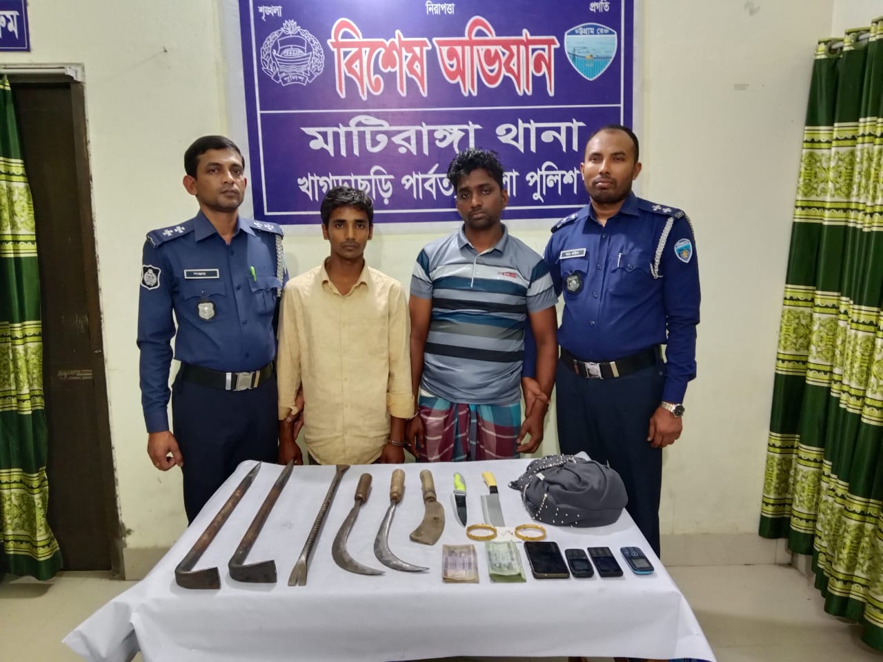 খাগড়াছড়ির মাটিরাঙ্গায় দেশীয় অস্ত্র সহ দুর্ধর্ষ দুই ডাকাতকে গ্রেপ্তারের খবর জানিয়েছে পুলিশ।