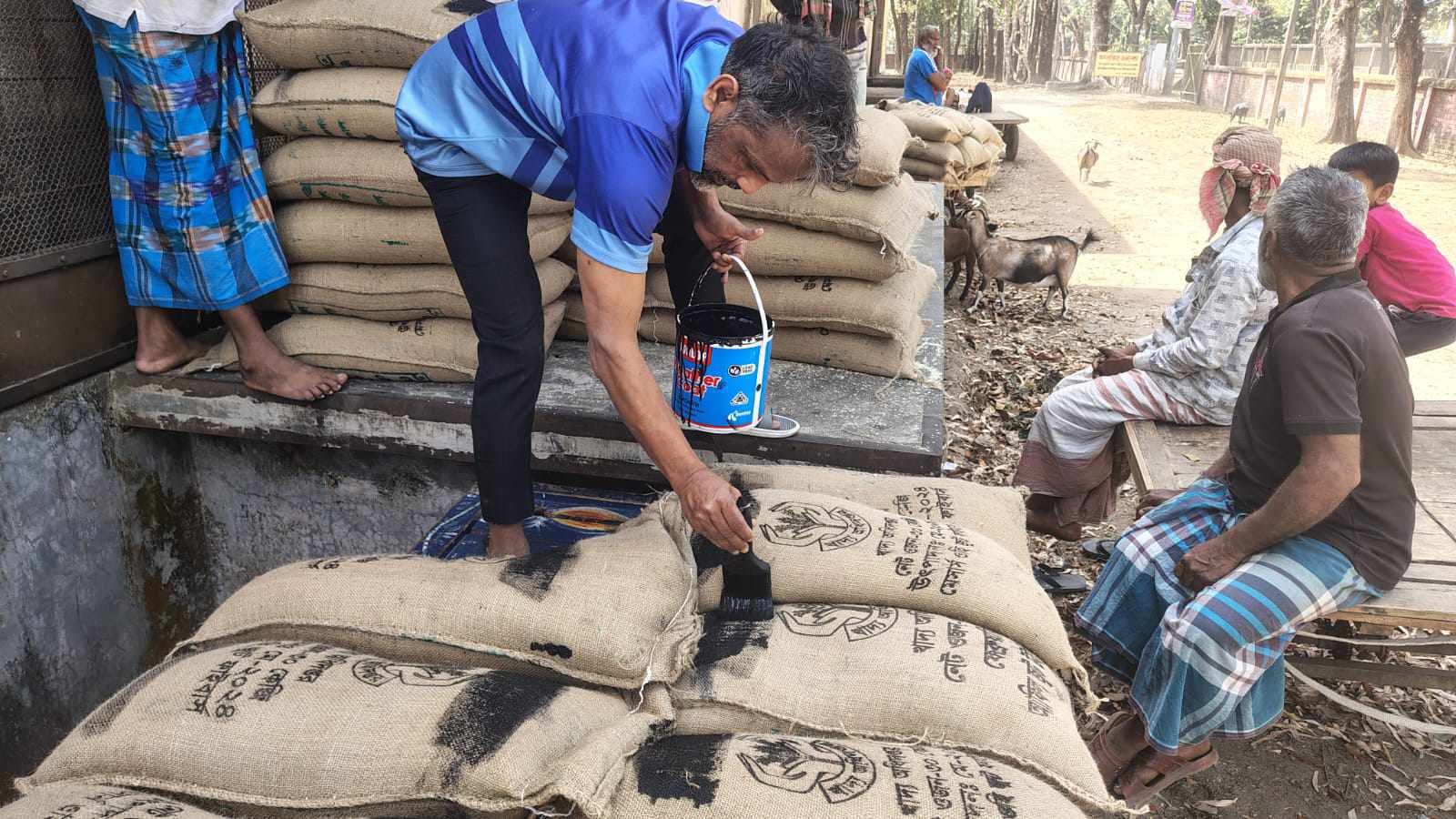 চালের বস্তায় পতিত স্বৈরাচার সরকারের নাম মুছে দিলেন খাদ্য পরিদর্শক