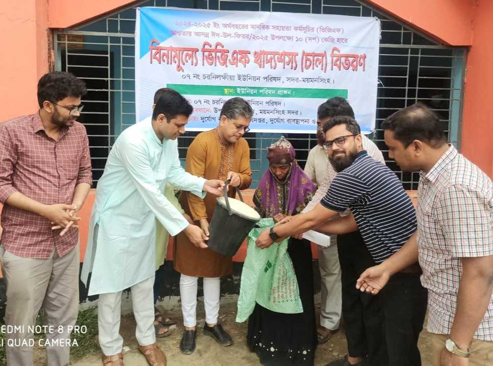 আরিফ রববানী: ময়মনসিংহের সদর উপজেলার চরনিলক্ষিয়া ইউনিয়নে পবিত্র ঈদ উল ফিতর উপলক্ষে ত্রাণ ও দুর্যোগ ব্যবস্থাপনা মন্ত্রণালয়ের মাধ্যমে সমাজের দুঃস্থ ও অসচ্ছল অসহায় মানুষের জন্য ঈদুল ফিতর উপলক্ষে সরকারের বরাদ্দকৃত উপহার মাথাপিছু ১০কেজি করে ভিজিএফ এর চাউল বিতরন কার্যক্রম উদ্বোধন করা হয়েছে ।