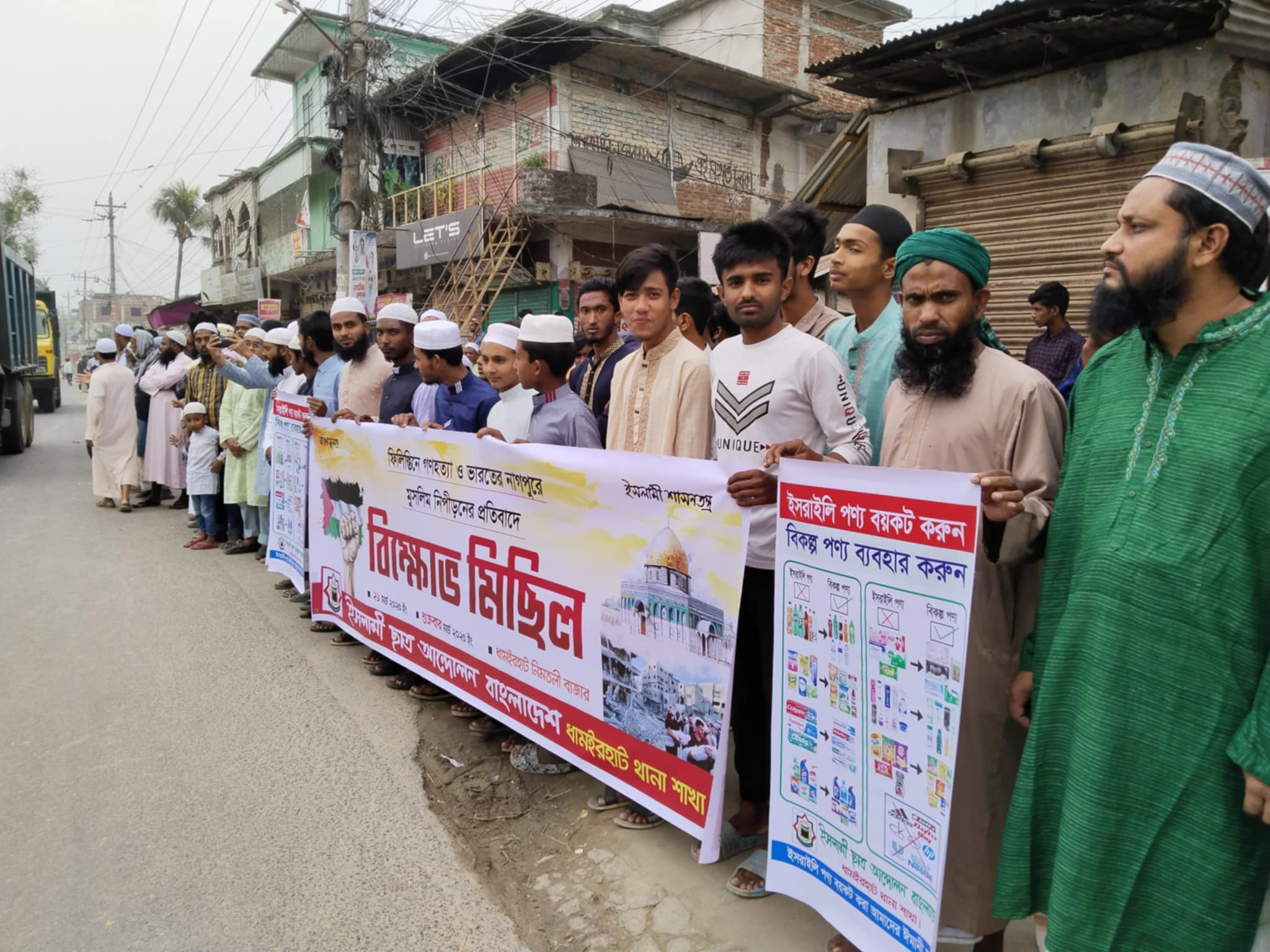 ফিলিস্তিনে গণহত্যা ও ভারতের নাগপুরে মুসলিম নিপীড়নের প্রতিবাদে ধামইরহাটে বিক্ষোভ মিছিল