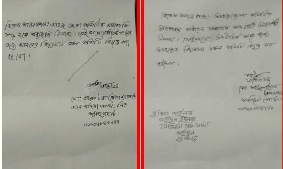 কমিটি বিলুপ্তির কারণ সম্পর্কে বিস্তারিত কিছু জানা না গেলেও, অভ্যন্তরীণ মতবিরোধ ও সাংগঠনিক বিভিন্ন জটিলতাকে কেন্দ্র করে এ সিদ্ধান্ত নেওয়া হয়েছে বলে সংশ্লিষ্ট সূত্রে জানা গেছে।