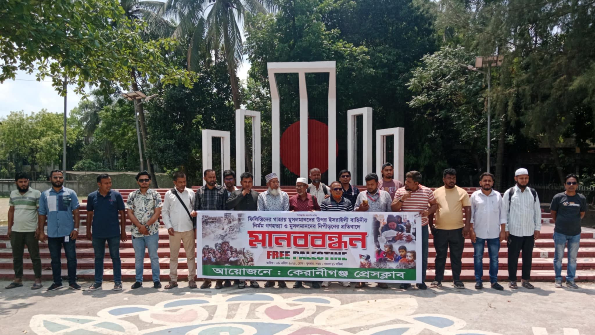 কেরাণীগঞ্জে ফিলিস্তিন মুসলমানদের উপর বর্বরচিত হামলার প্রতিবাদে সাংবাদিকদের মানববন্ধন