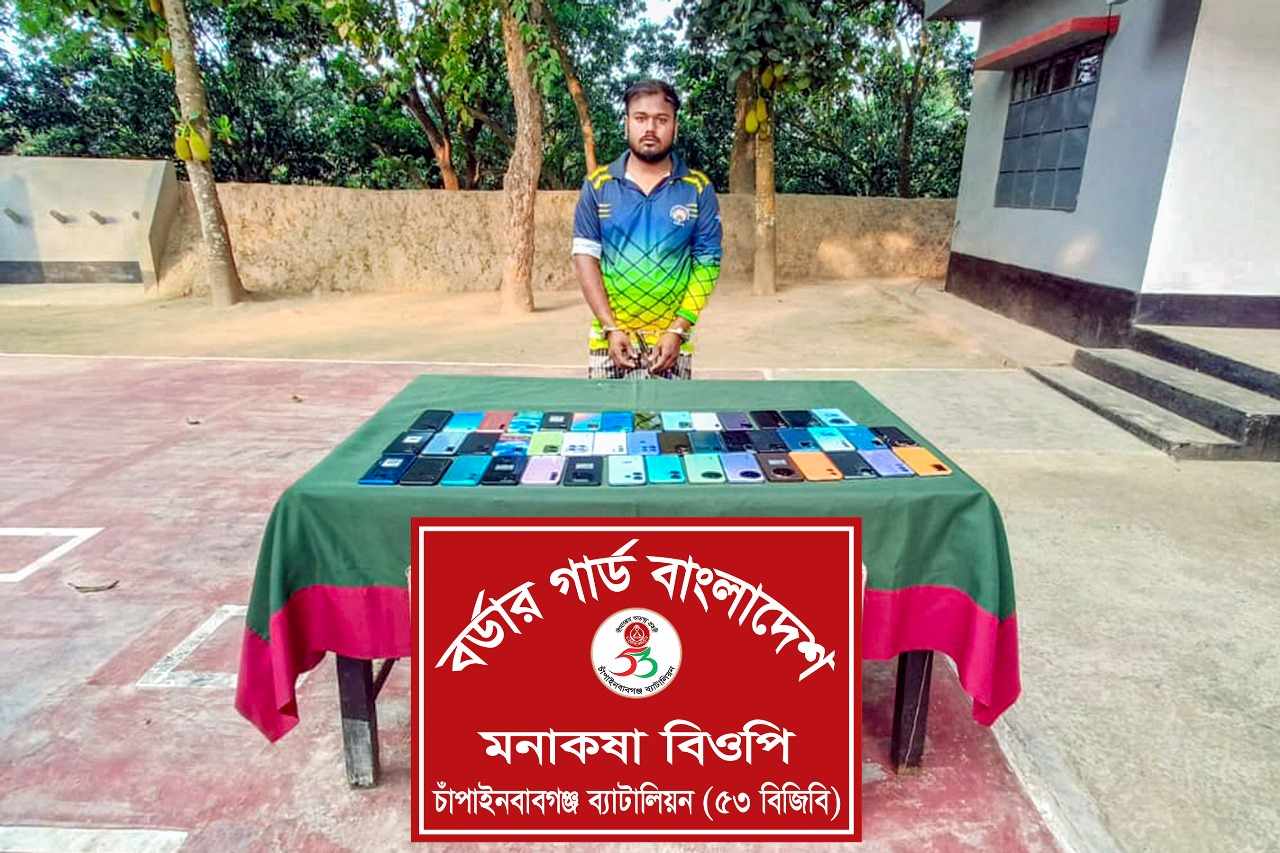 চাঁপাইনবাবগঞ্জ সীমান্তে মোবাইল চোরাচালানের সময় একজন আটক