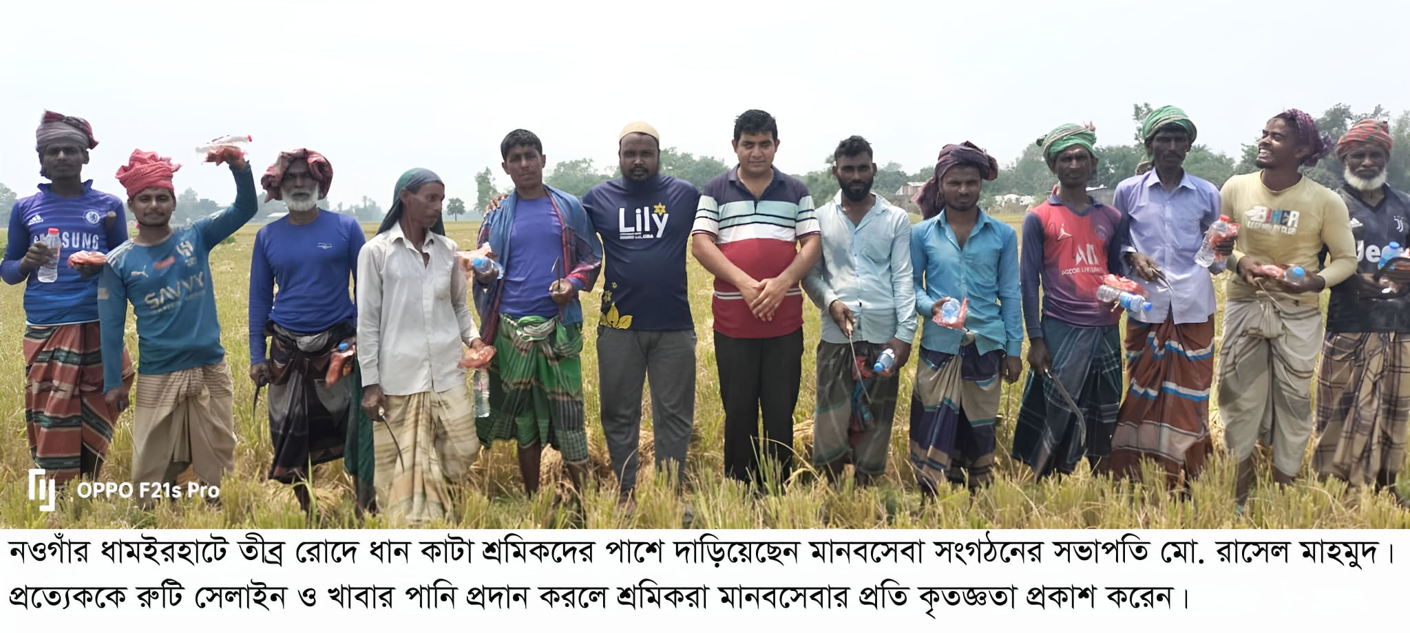 ধামইরহাটে তীব্র রোদে ধান কাটা শ্রমিকদের পাশে খাবার নিয়ে হাজির মানবসেবা